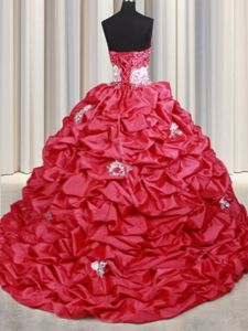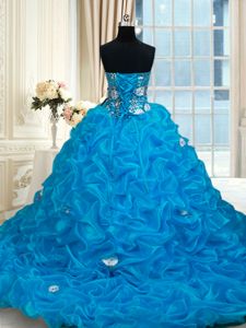 Custom Made Beading and Appliques and Sequins and Pick Ups 15th Birthday Dress Coral Red Lace Up Sleeveless With Brush Train