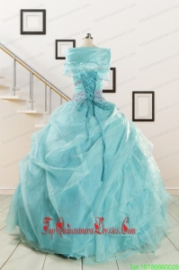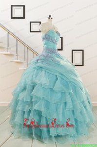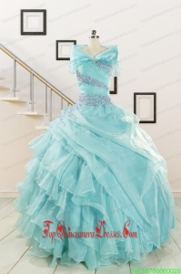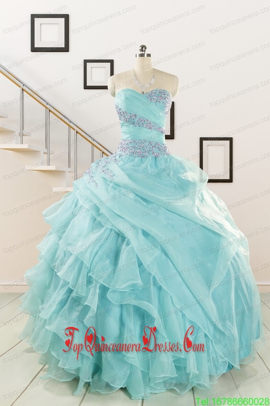 Custom Made Beading and Ruffles Pretty Quinceanera Dresses in Turquoise for 2015