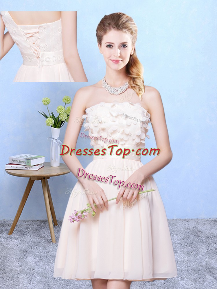 Custom Made Champagne Chiffon Lace Up Strapless Sleeveless Knee Length Quinceanera Dama Dress Appliques