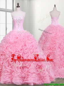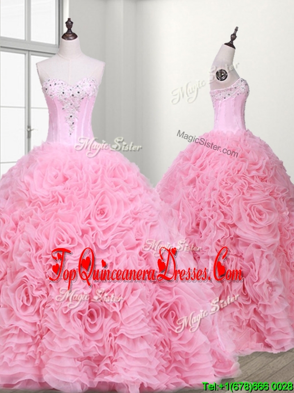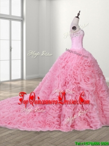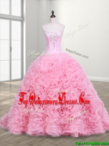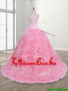 Custom Made Elegant Rolling Flowers and Beaded Quinceanera Dress with Court Train