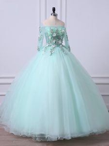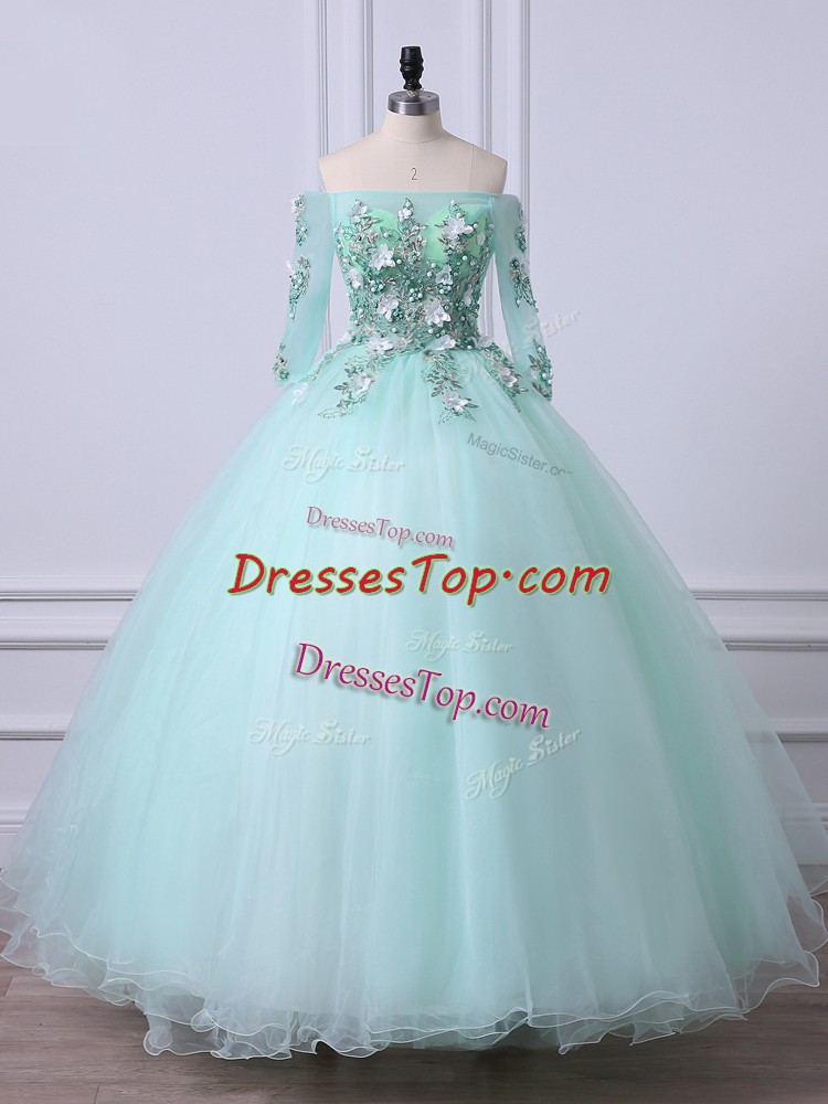 Custom Made Floor Length Ball Gowns 3 4 Length Sleeve Apple Green Quinceanera Dress Lace Up