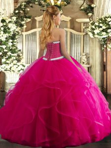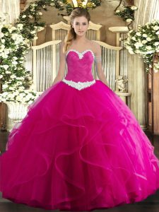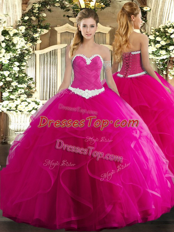 Custom Made Fuchsia Sweetheart Lace Up Appliques and Ruffles Quinceanera Gowns Sleeveless