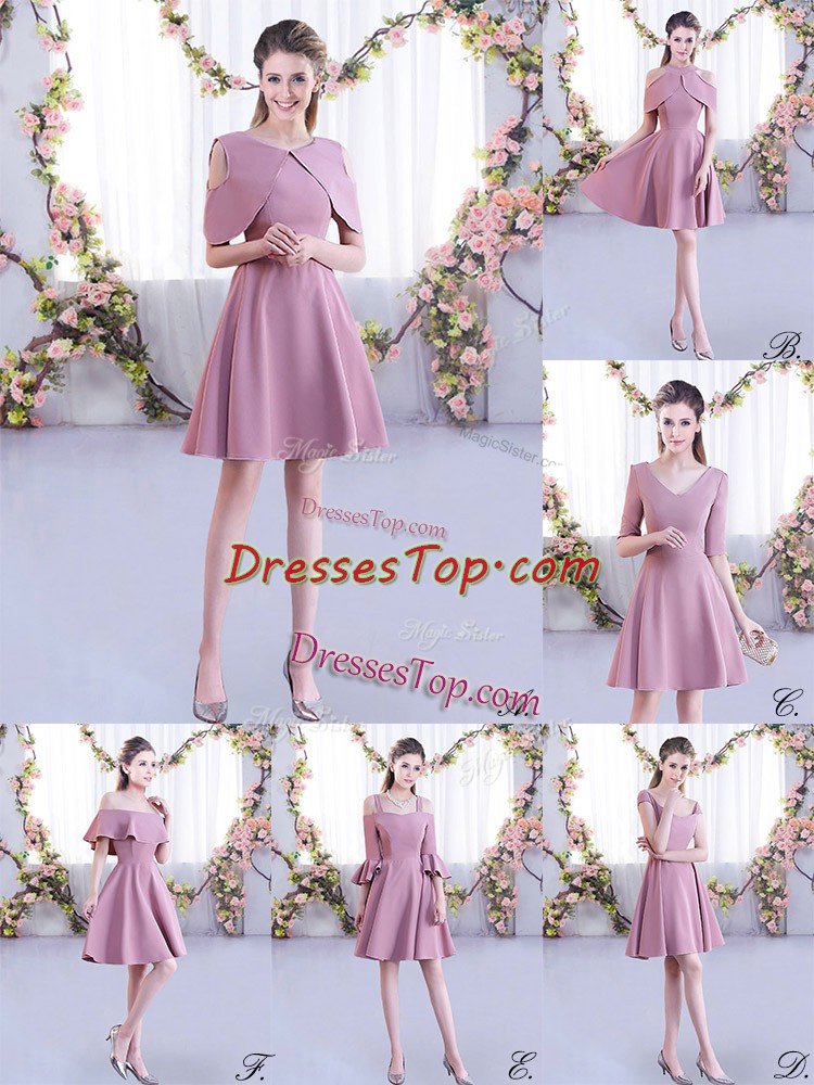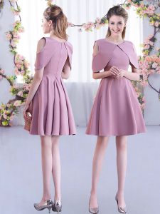 Custom Made Half Sleeves Mini Length Ruching Zipper Dama Dress for Quinceanera with Pink