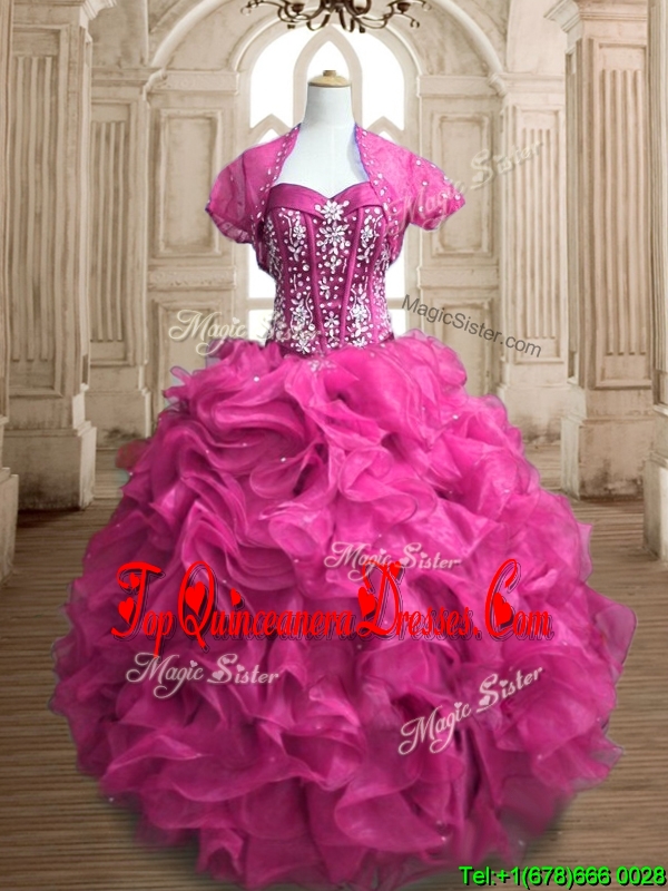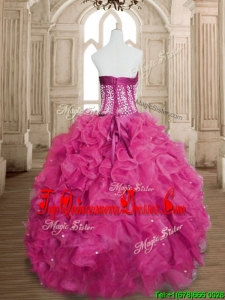 Custom Made Lovely Hot Pink Big Puffy Quinceanera Dress with Beading and Ruffles