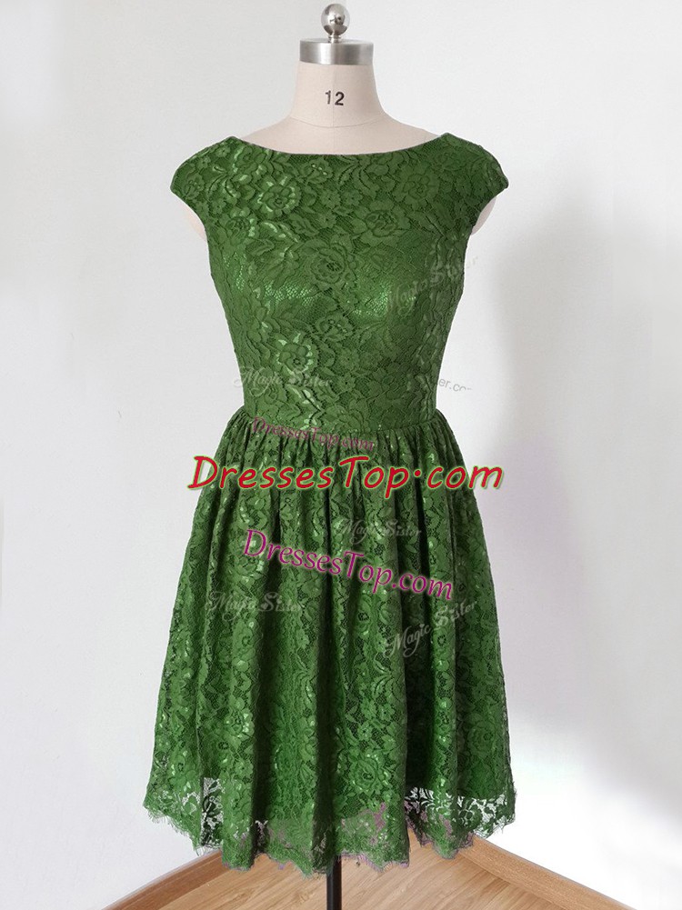 Custom Made Olive Green Lace Lace Up Scoop Cap Sleeves Knee Length Quinceanera Dama Dress Lace