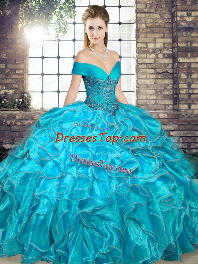 Custom Made Organza Sleeveless Floor Length Quinceanera Gowns and Beading and Ruffles