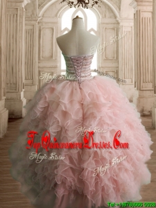 Custom Made Peach Organza Quinceanera Dress with Beading and Ruffles