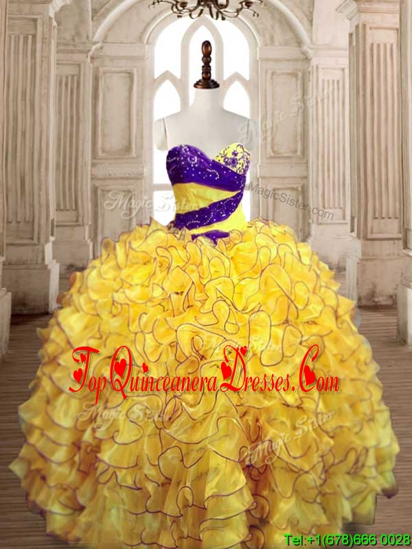 Custom Made Pretty Ball Gown Yellow Quinceanera Dress with Beading and Ruffles