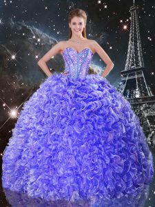 Custom Made Purple 15 Quinceanera Dress Military Ball and Sweet 16 and Quinceanera with Beading and Ruffles Sweetheart Sleeveless Lace Up