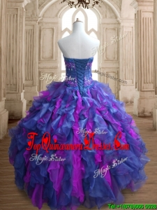 Custom Made Really Puffy Organza Quinceanera Dress with Appliques and Ruffles
