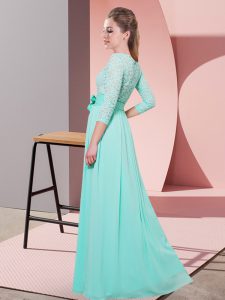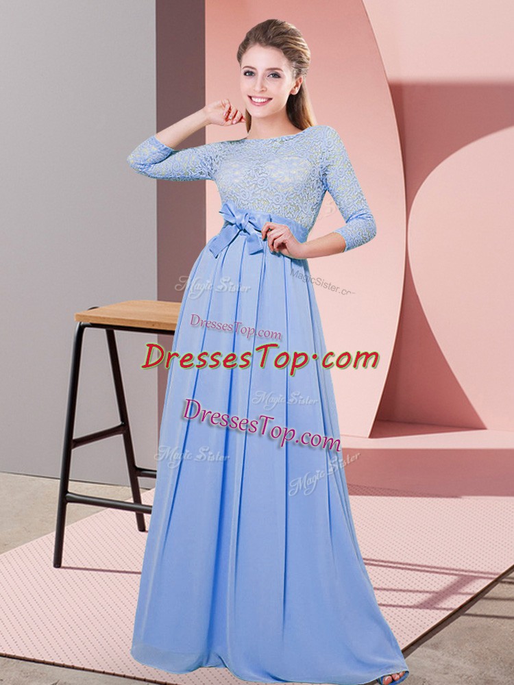 Custom Made Scoop 3 4 Length Sleeve Vestidos de Damas Floor Length Lace and Belt Lavender Chiffon