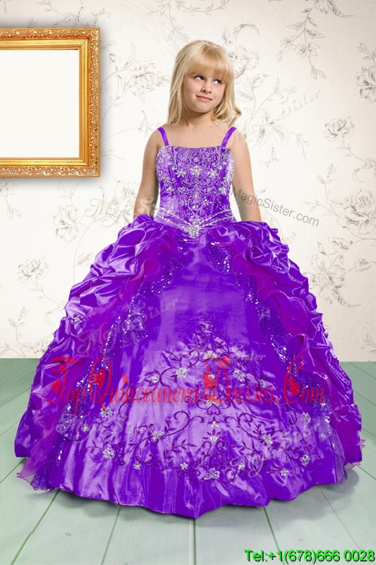 Custom Made Sleeveless Beading and Appliques and Pick Ups Lace Up Pageant Dress Toddler