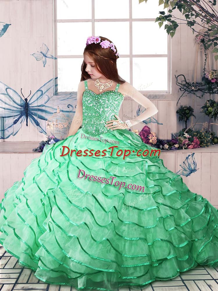 Custom Made Sleeveless Court Train Lace Up Beading and Ruffled Layers Pageant Dress Womens