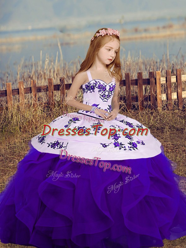 Custom Made Straps Sleeveless Pageant Gowns For Girls Embroidery and Ruffles Lace Up