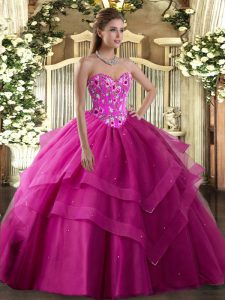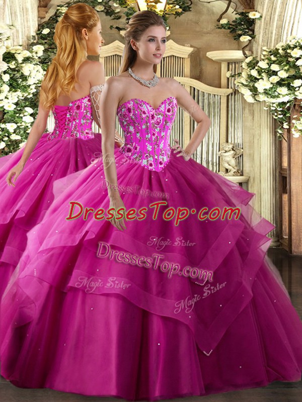 Custom Made Tulle Sleeveless Floor Length 15th Birthday Dress and Embroidery and Ruffled Layers