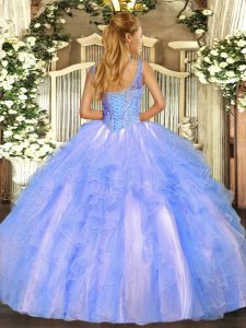 Custom Made Tulle Sleeveless Floor Length Quinceanera Gowns and Beading and Ruffles