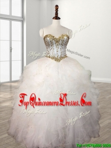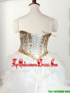 Custom Made Visible Boning Beaded Bodice and Ruffled Quinceanera Dress in White