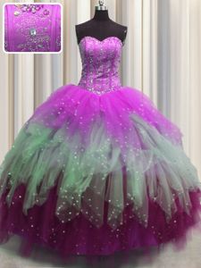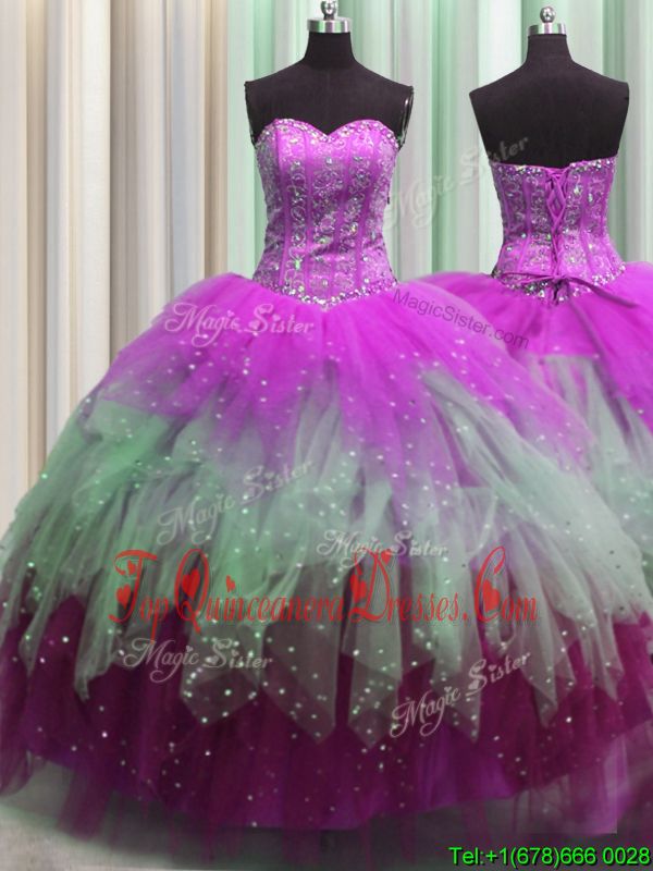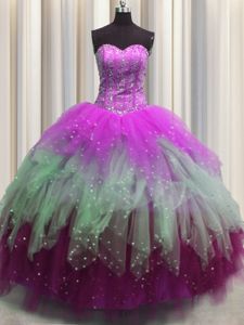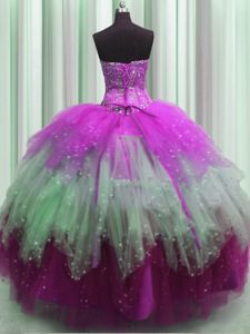 Custom Made Visible Boning Multi-color Sweetheart Lace Up Beading and Ruffles and Sequins Sweet 16 Dress Sleeveless