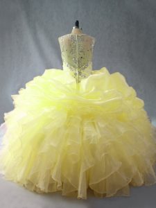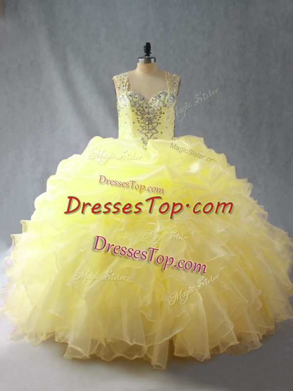 Custom Made Yellow Zipper Straps Beading and Ruffles Sweet 16 Quinceanera Dress Organza Sleeveless