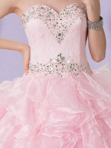 Customized Baby Pink Sleeveless Beading and Ruffles Floor Length 15 Quinceanera Dress