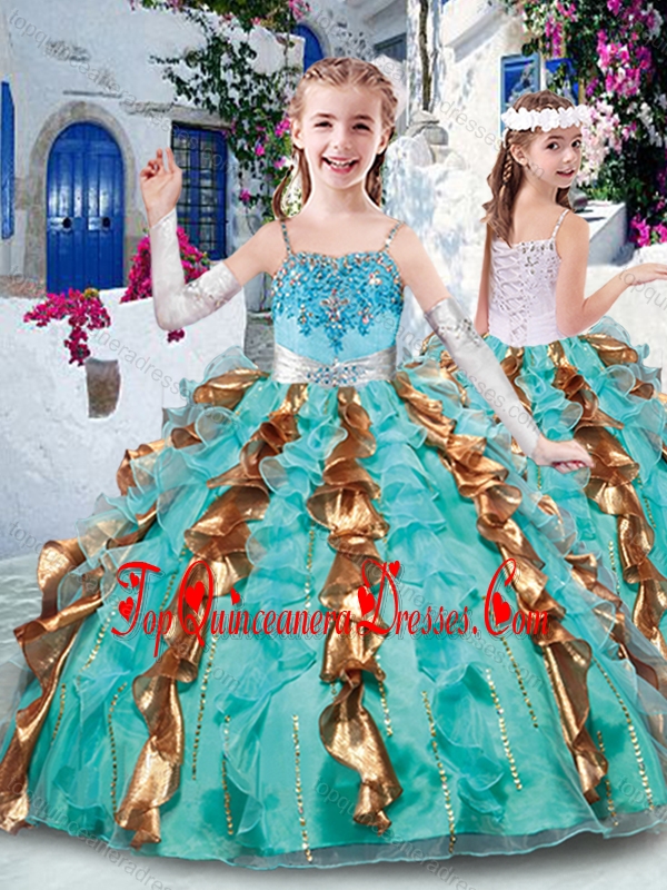Customized Ball Gown Appliques and Ruffles Little Girl Mini Quinceanera Dresses for Party