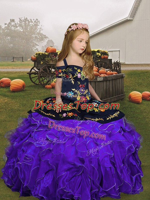 Customized Ball Gowns Little Girl Pageant Gowns Purple Straps Organza Sleeveless Floor Length Lace Up