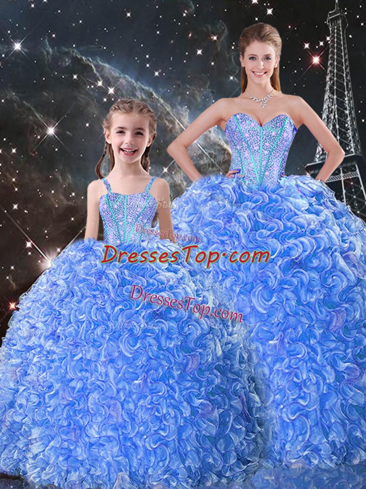Customized Blue Sweet 16 Dress Military Ball and Sweet 16 and Quinceanera with Beading and Ruffles Sweetheart Sleeveless Lace Up
