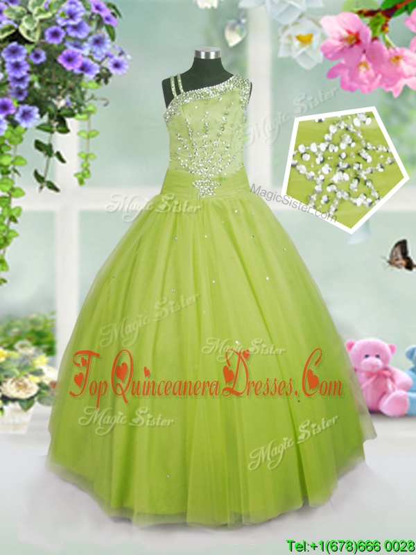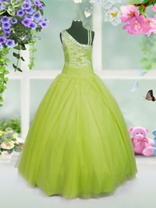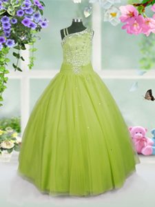 Customized Floor Length Ball Gowns Sleeveless Apple Green Kids Pageant Dress Side Zipper
