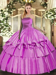 Customized Floor Length Ball Gowns Sleeveless Lilac Quinceanera Dresses Lace Up