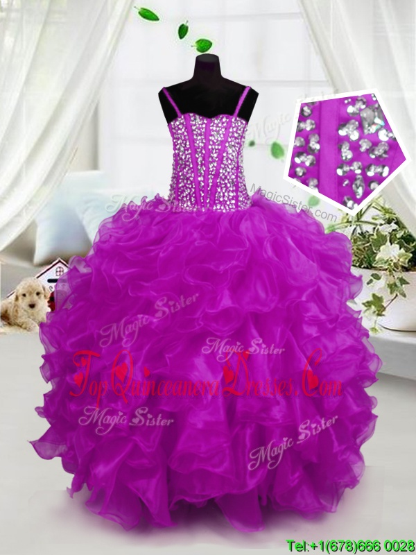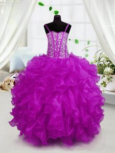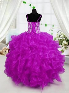 Customized Floor Length Lace Up Pageant Dress Wholesale Hot Pink and In for Party and Wedding Party with Beading and Ruffles