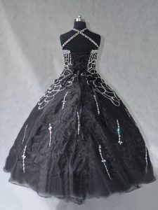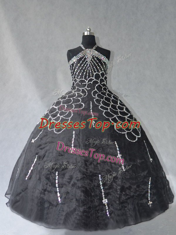 Customized Floor Length Lace Up Quinceanera Gown Black for Sweet 16 and Quinceanera with Beading