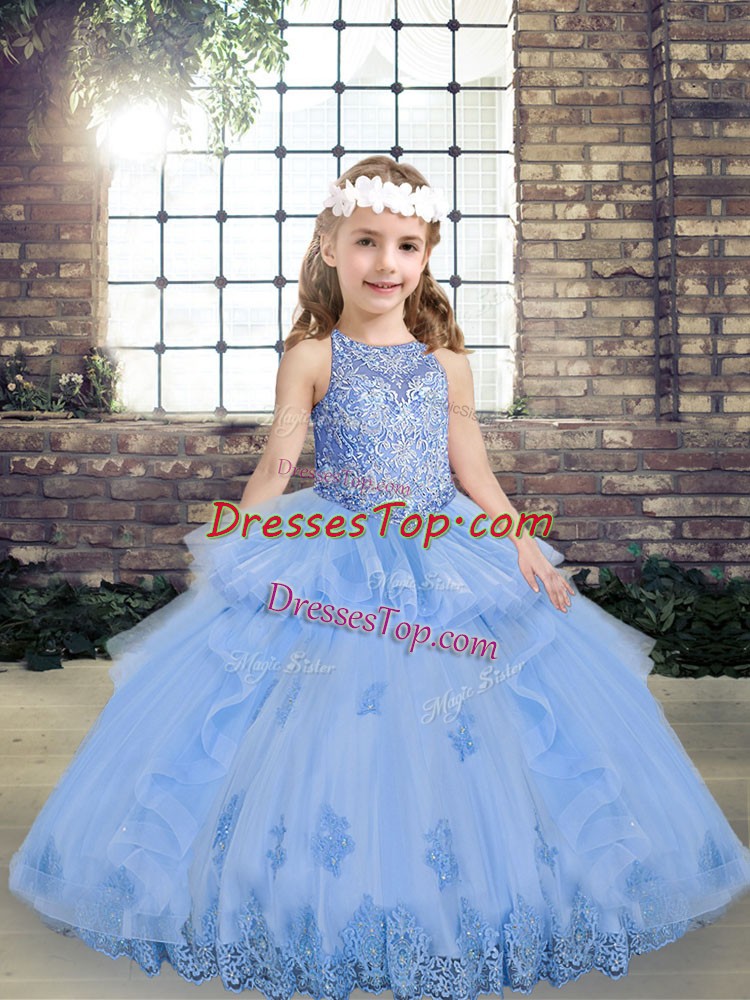 Customized Floor Length Lavender Custom Made Pageant Dress Tulle Sleeveless Appliques