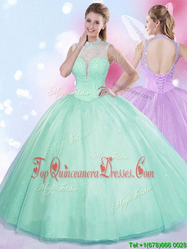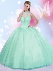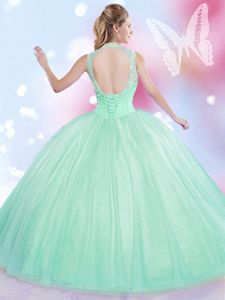 Customized Four Piece Halter Top Sleeveless Lace Up Floor Length Beading and Ruffles Sweet 16 Dress