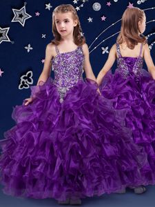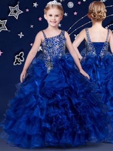 Customized Lace Up Pageant Dress Royal Blue and Purple and Orange and In for Quinceanera and Wedding Party with Beading and Ruffles