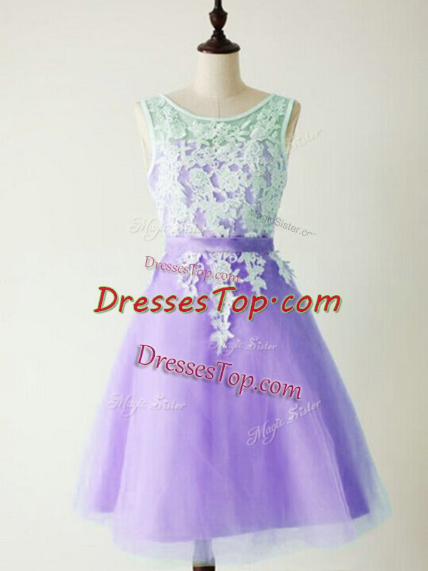Customized Lavender Lace Up Scoop Lace Quinceanera Dama Dress Tulle Sleeveless