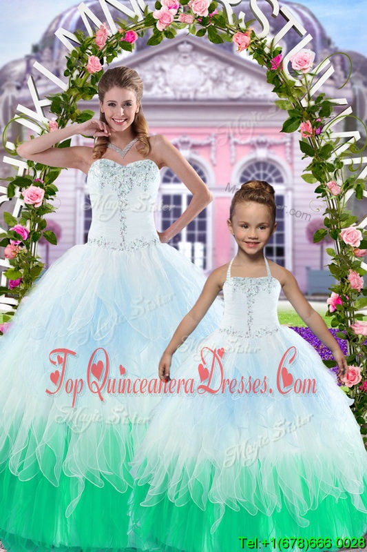 Customized Multi-color Ball Gowns Beading Sweet 16 Dress Lace Up Organza Sleeveless Floor Length