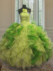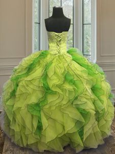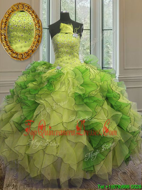 Customized Multi-color Ball Gowns Strapless Sleeveless Organza Floor Length Lace Up Beading and Ruffles Sweet 16 Quinceanera Dress