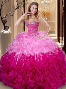 Customized Multi-color Lace Up Sweetheart Beading and Ruffles Quince Ball Gowns Organza Sleeveless