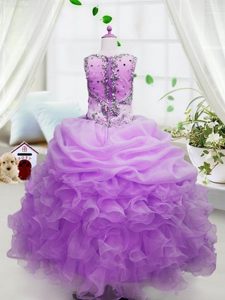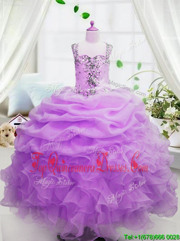 Customized Rose Pink Zipper Square Beading and Ruffles and Pick Ups Winning Pageant Gowns Organza Sleeveless
