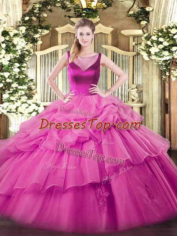 Customized Scoop Sleeveless Organza Quinceanera Gown Beading and Appliques Side Zipper