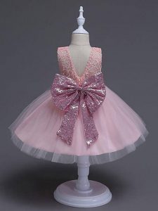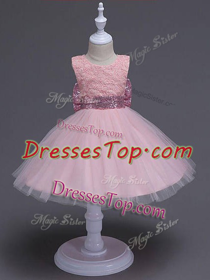 Customized Scoop Sleeveless Tulle Little Girls Pageant Dress Wholesale Lace and Bowknot Zipper