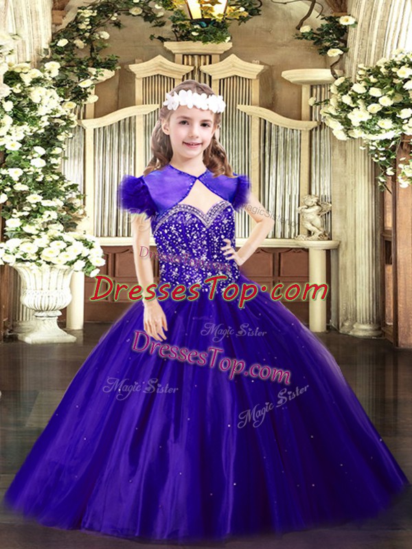 Customized Sleeveless Beading Lace Up Kids Pageant Dress