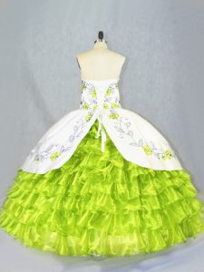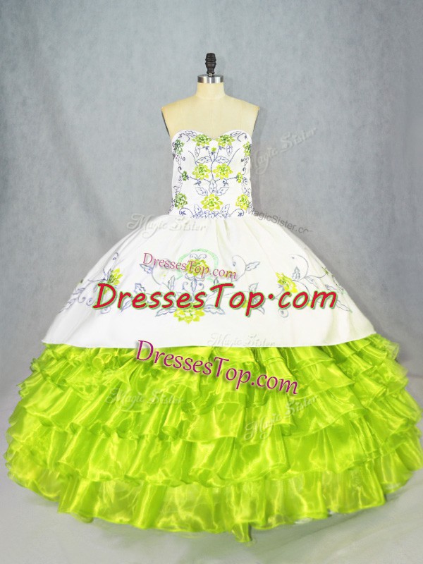 Customized Sleeveless Floor Length Embroidery and Ruffled Layers Lace Up Sweet 16 Dress with