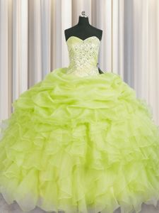 Customized Sleeveless Lace Up Floor Length Beading and Ruffles Sweet 16 Dress
