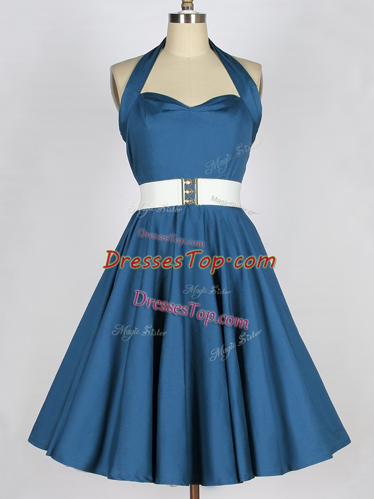 Customized Sleeveless Taffeta Knee Length Lace Up Quinceanera Dama Dress in Teal with Belt