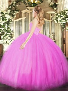 Customized Sleeveless Tulle Floor Length Lace Up Quince Ball Gowns in Orange with Beading