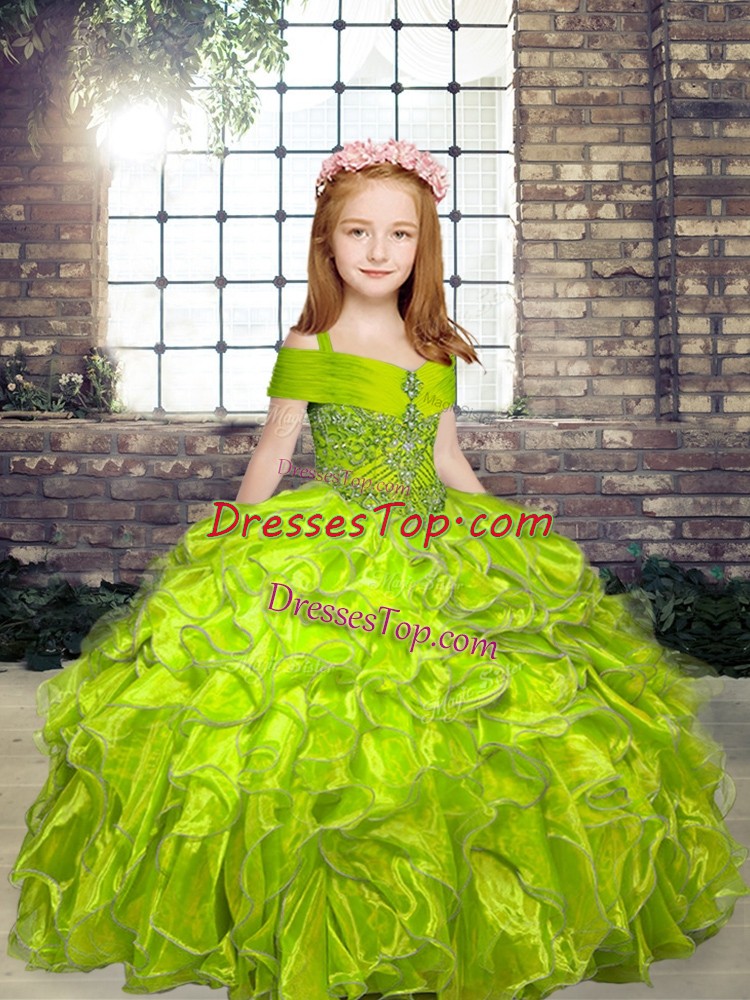 Customized Straps Sleeveless Lace Up Winning Pageant Gowns Olive Green Organza