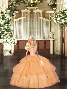 Customized Tulle Sleeveless Floor Length Quinceanera Gowns and Beading
