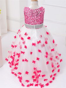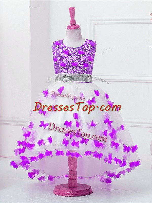 Customized White Ball Gowns Appliques and Sequins Little Girls Pageant Gowns Zipper Tulle Sleeveless High Low