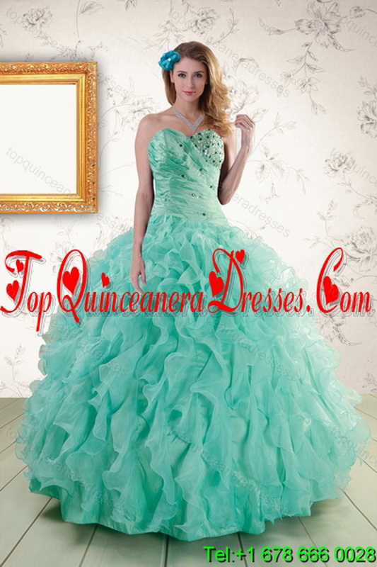 Cute 2015 Spring Strapless Quinceanera Dresses with Appliques and Ruffles
